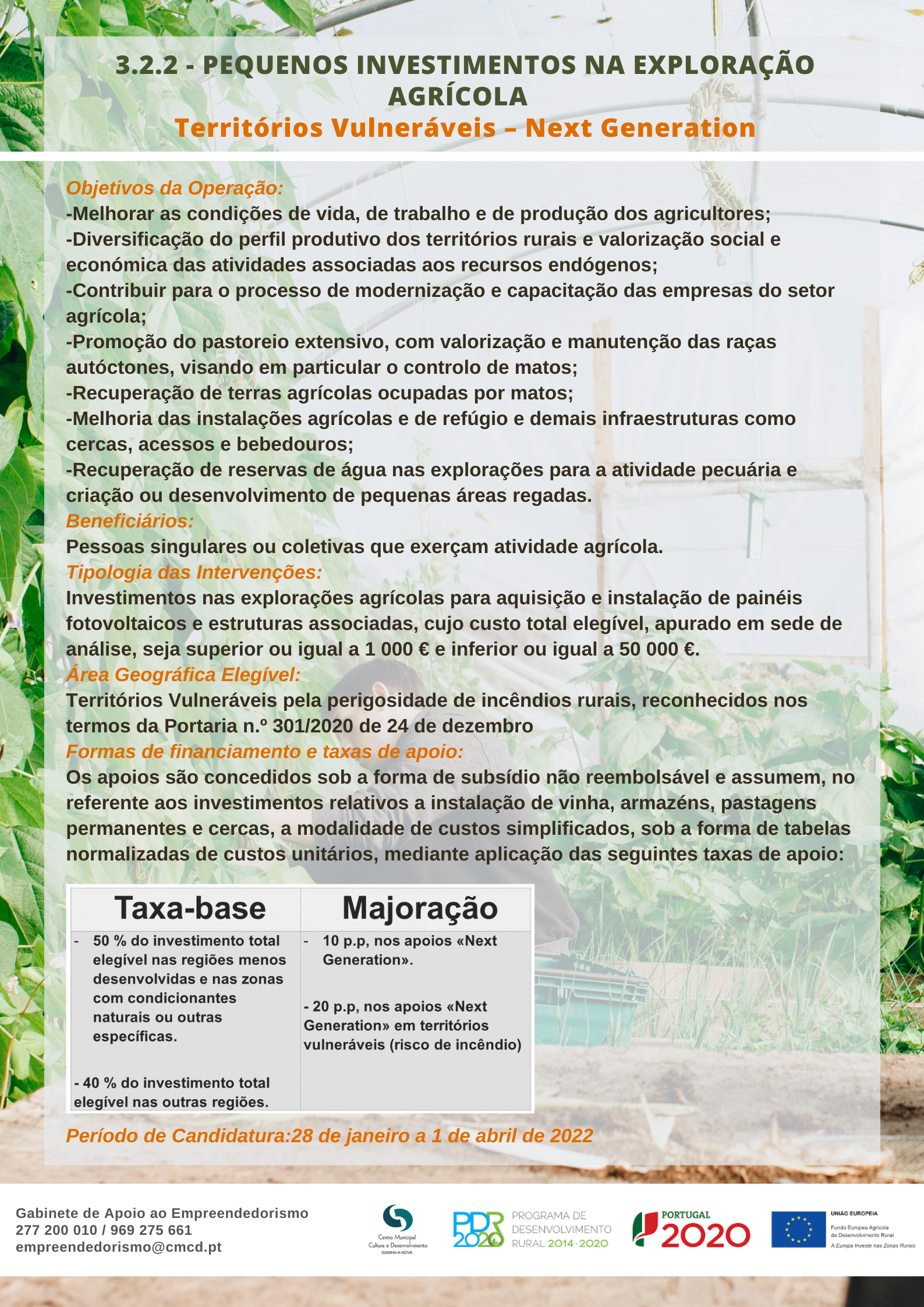 3.2.2 PEQUENOS INVESTIMENTOS NA EXPLORAÇÃO AGRÍCOLA Territórios Vulneráveis Next Generation