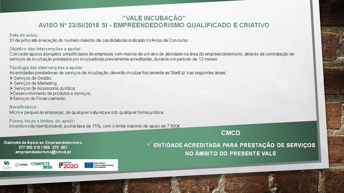 "Vale Incubação" Aviso Nº 23/SI/2018