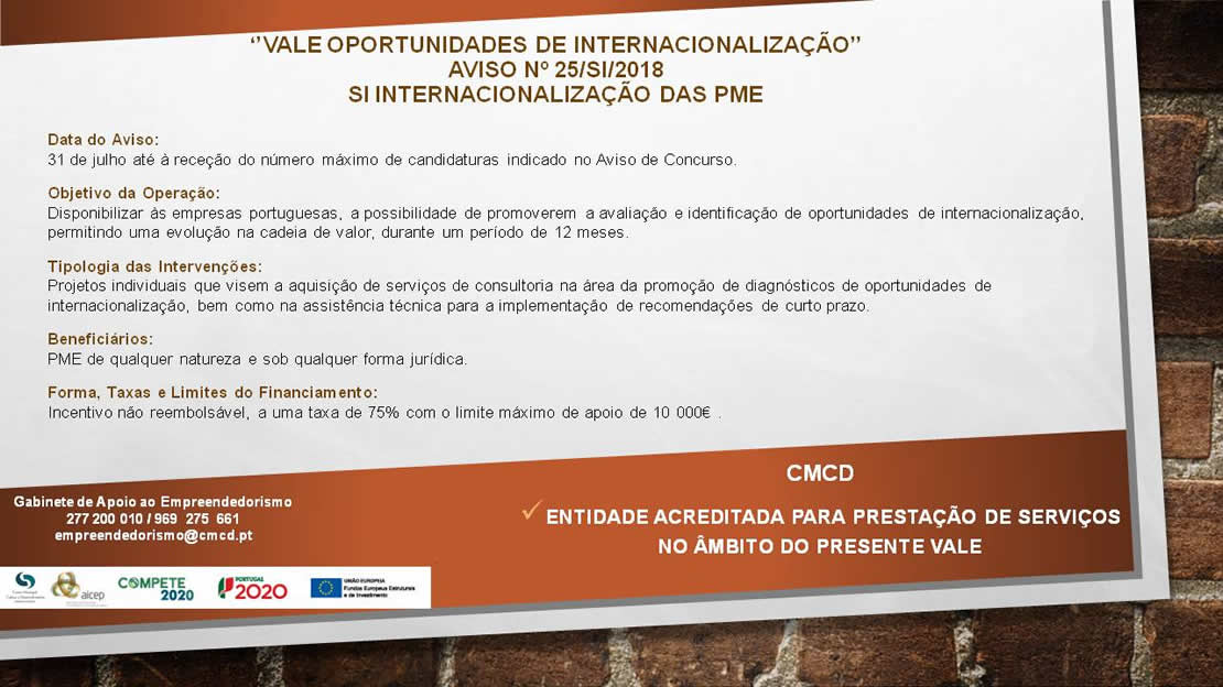 "Vale Oportunidades de Internacionalização" Aviso Nº 25/SI/2018